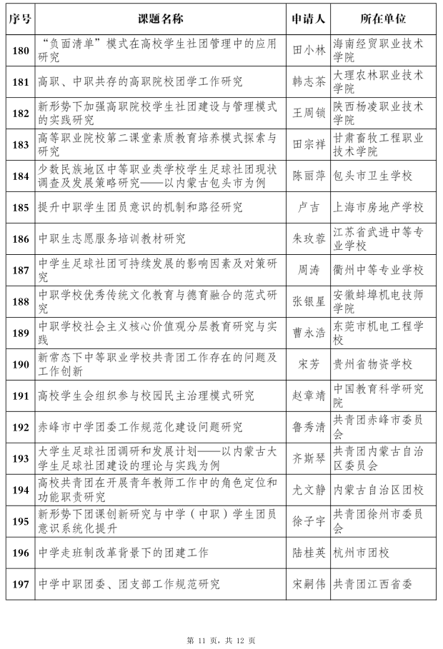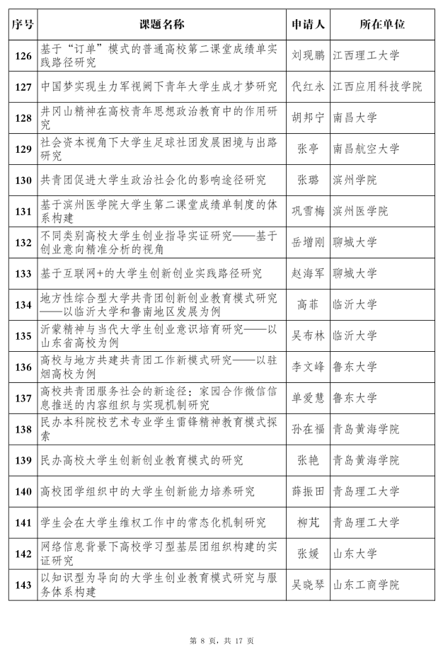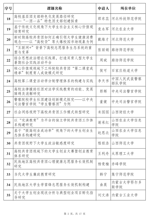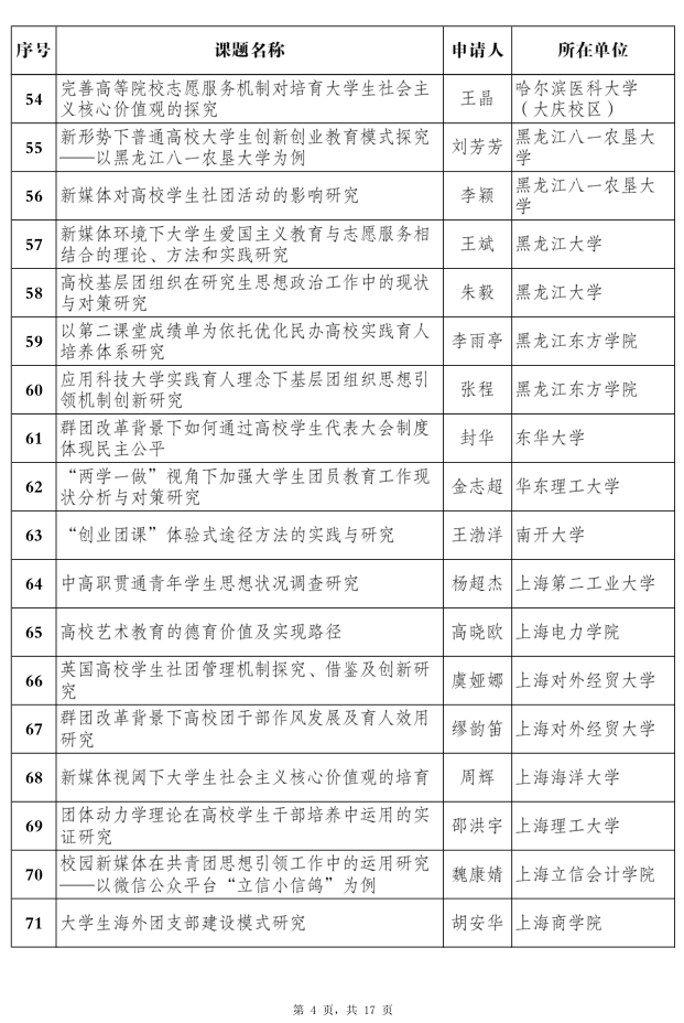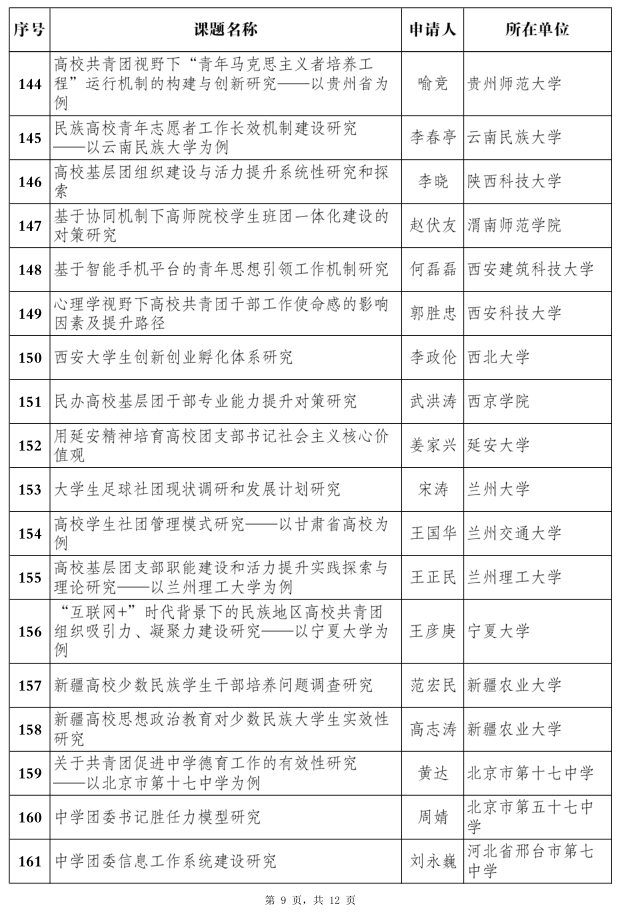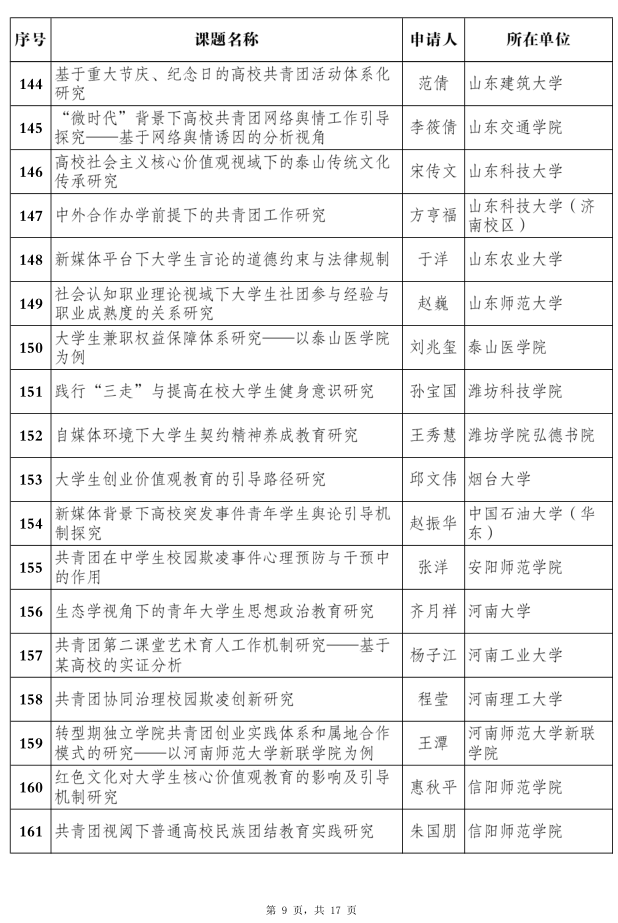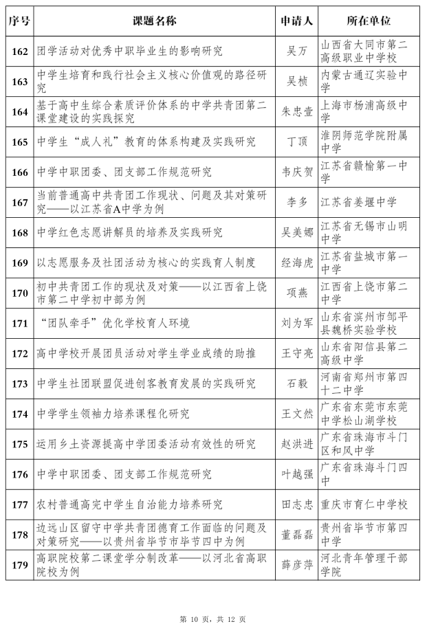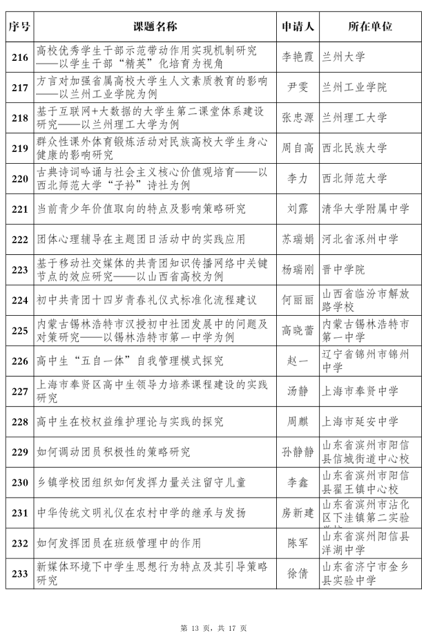任何单位和个人对拟入选的课题名单持有异议,请在公示时间内以电话、邮件或信函等方式向团中央学校部提出,为便于核实、反馈有关情况,请提供真实姓名、联系方式和工作单位。我们将严格遵守工作纪律,履行保密义务。