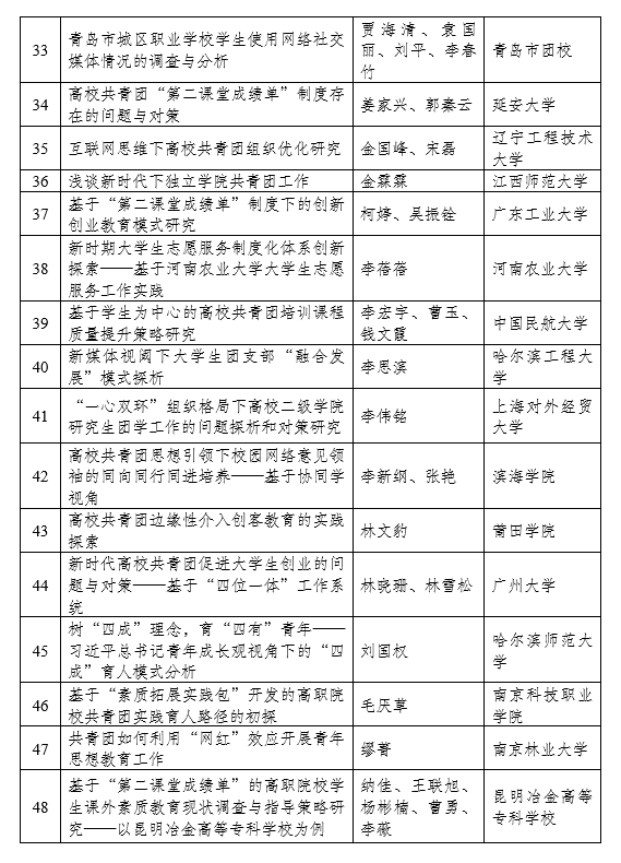 学校共青团理论研究的学术高地 学校共青团思想创新的前沿阵地学校共青团咨询决策的重要基地